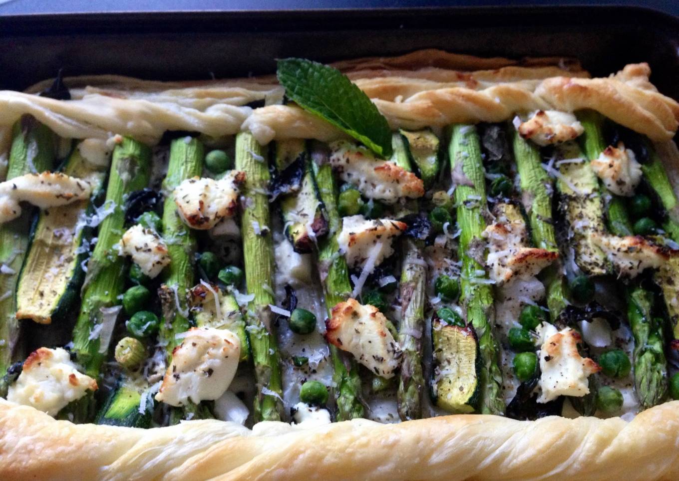 A really simple and tasty fresh asparagus and goats cheese tart using fresh spring veg
