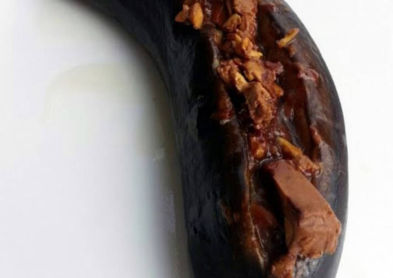 - make a slice cut in between banana but dont cut thru and stuff dark chocolate in between or