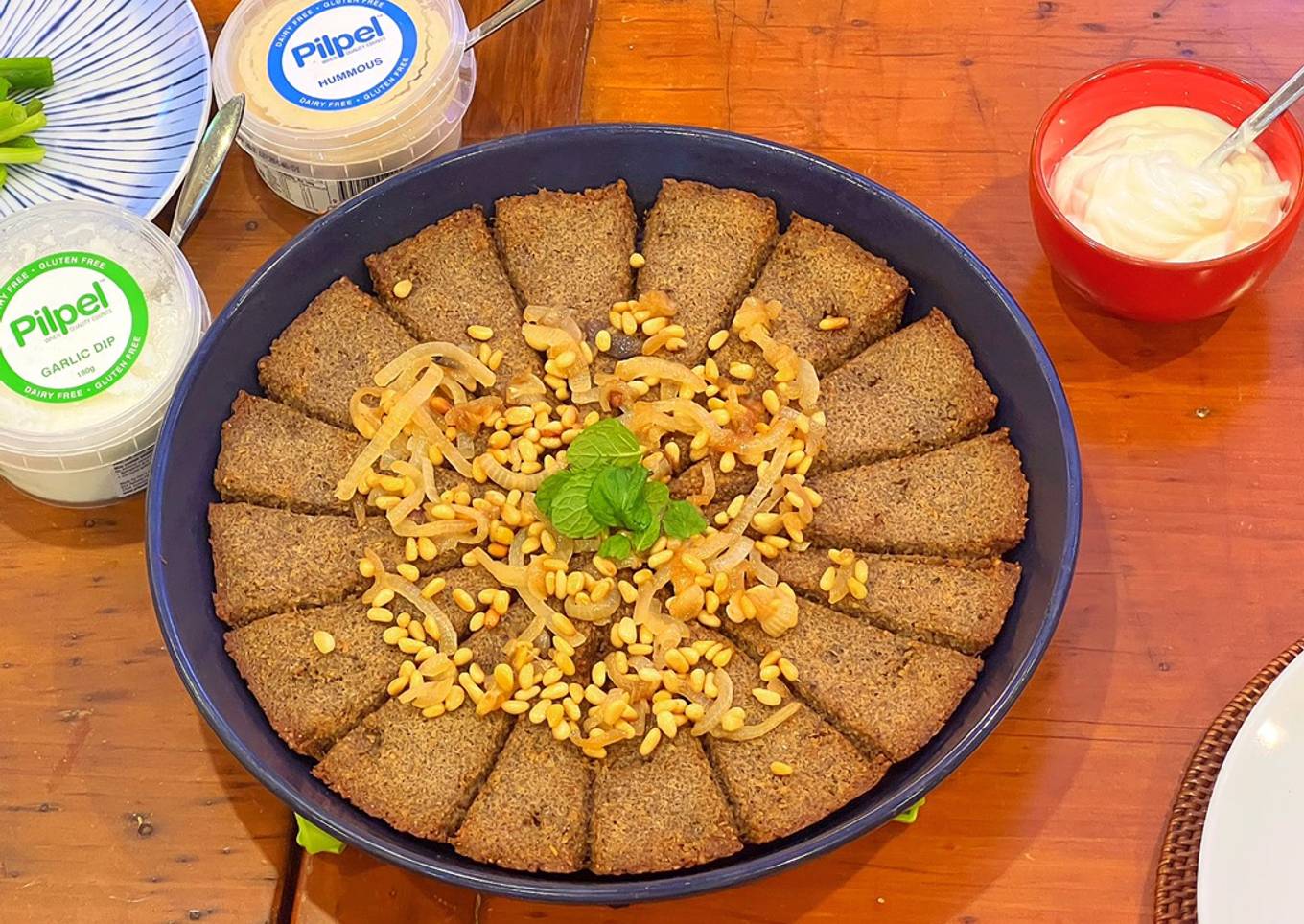Kibbee Busta (Baked Kibbee with onion and pine nuts)