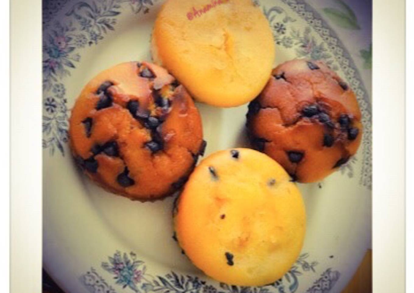 Eggless: Vanilla-Chocolate Chips Muffins