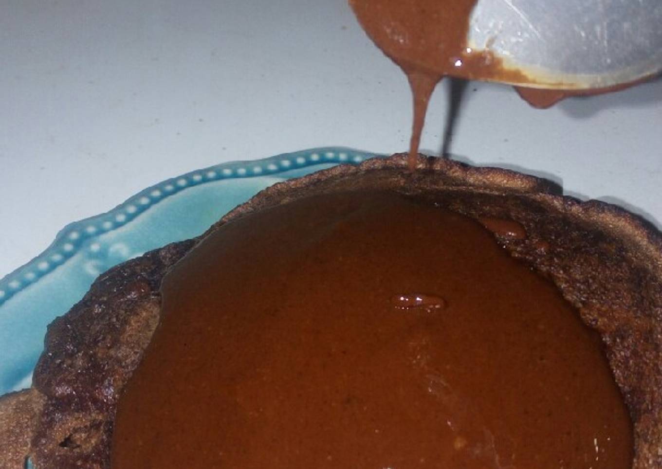 Instructions to make to make Chocolate pancakes topped with homemade chocolate sauce