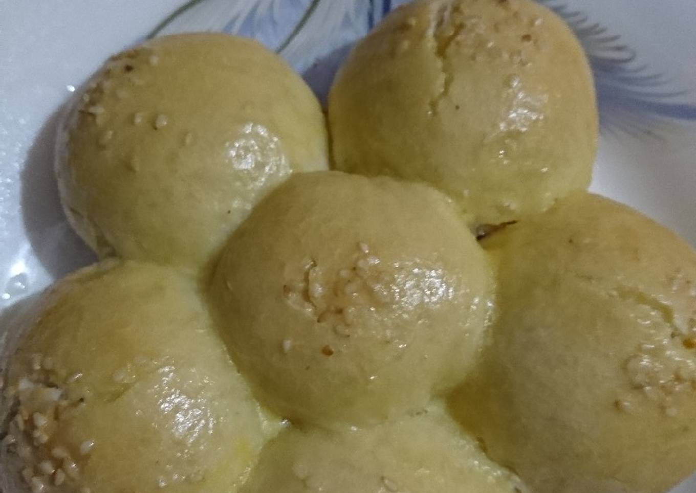 - Then as after an hour knead again spread flour on slab and knead and make small balls and place on mould. In circle like flower.rest for 15mints spread egg wash and spread seasame seed until oven heats up.