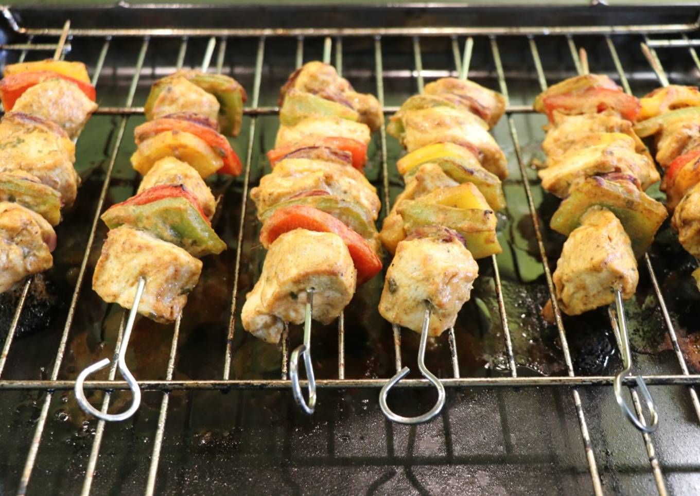 - Cook for 10 to 12 minutes and then turn the skewers over.