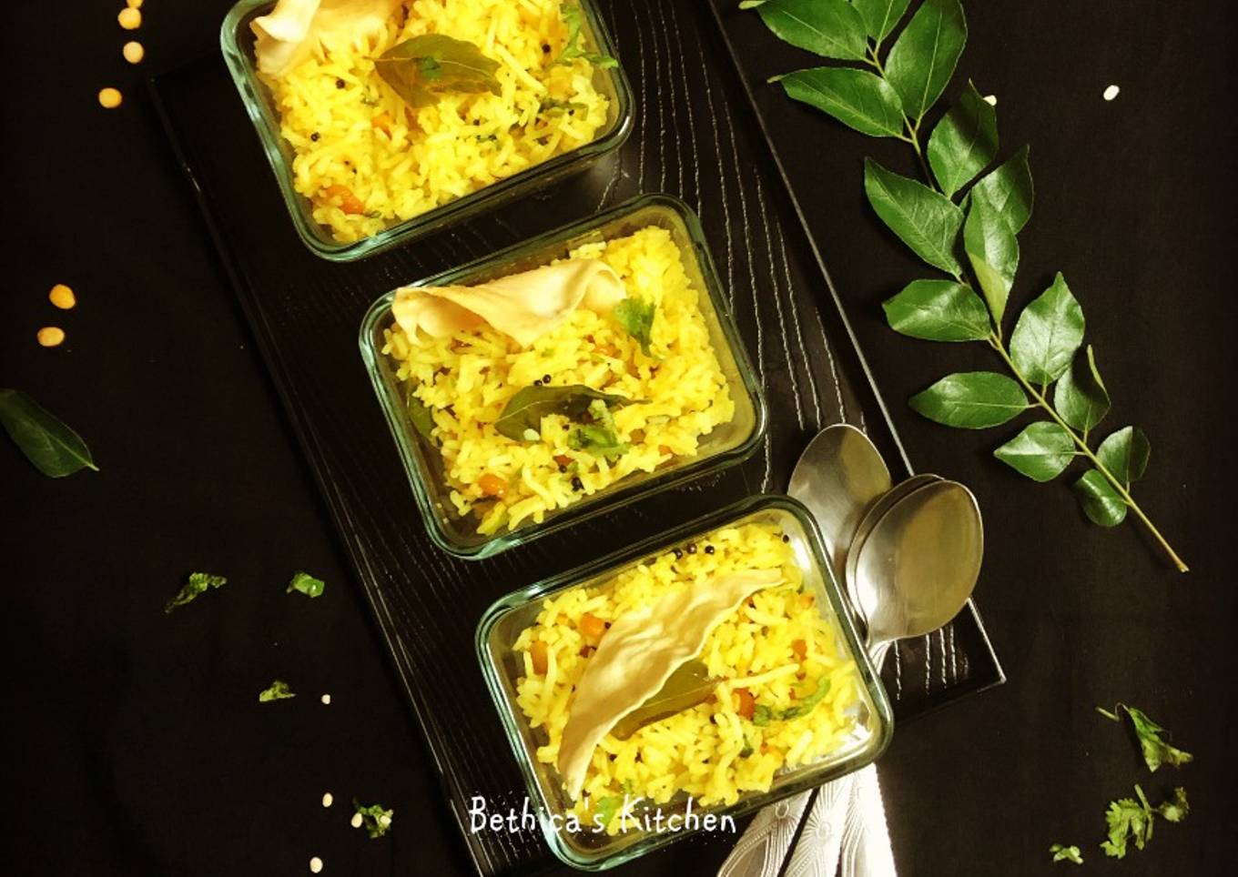 #mania - A typical South Indian specialty, it is also known as Mangai Sadam or Mavinakayi Chitranna. A great way to use up any leftover rice is to prepare this simple and yummy green mango rice. This dish is relished for breakfast and a quick brunch/lunch. Very easy to prepare, it is also a perfect lunch box meal or a picnic meal that can be served with any chips, papad, or fryums.